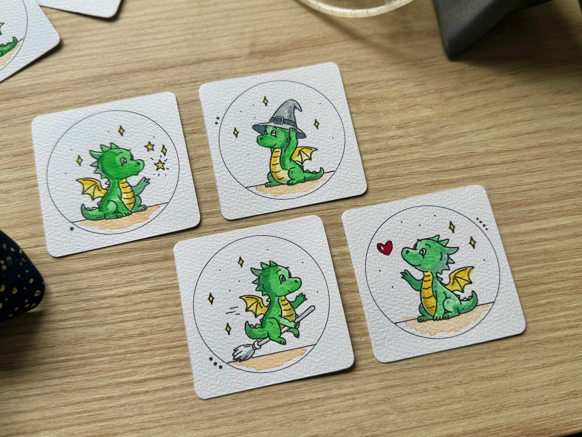 Around 7 x 7 cm big. Signed, stamped and numbered. Painted with Aquarell-Colors on Art Paper.